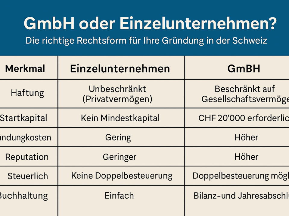 GmbH oder Einzelunternehmen? Die richtige Rechtsform in der Schweiz